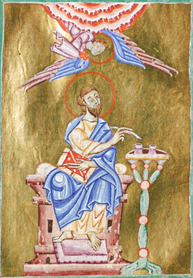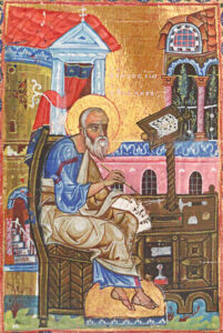 Image from Grec 64, an 11th-century Greek manuscript housed at Bibliothèque nationale de France; image from BnF Gallica; allowed under public domain.